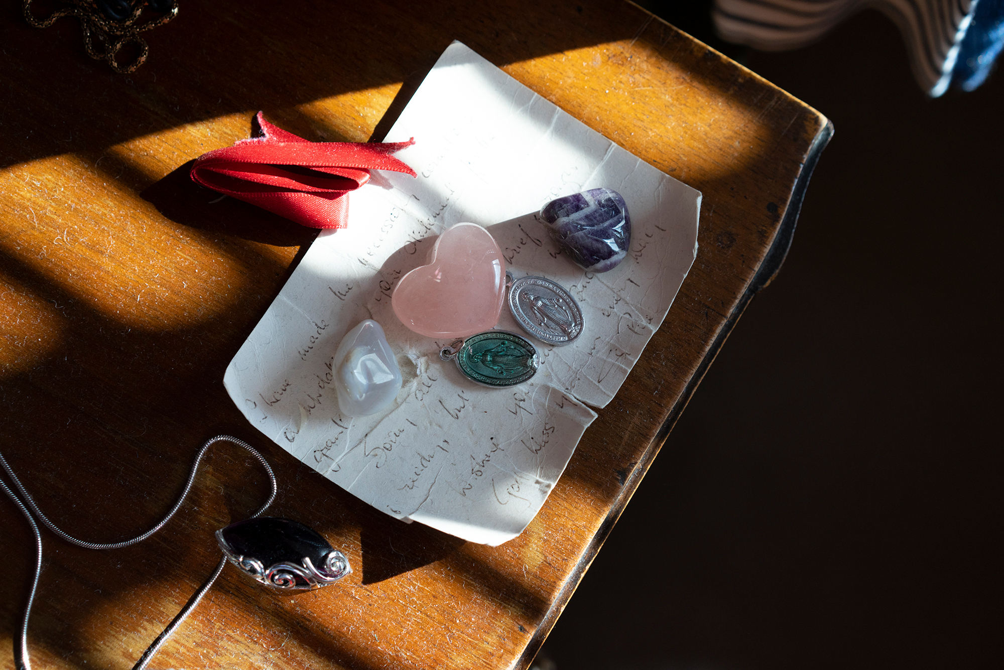 In 2015, around the time I started working on my project The Red Ribbon, I tied one, a red ribbon, to Nancy’s collar, the superstition or traditional belief behind having something red tied to you was that it acted as a form of protection, every new collar had a red ribbon attached, I left Nancy’s collar on her when I buried her.